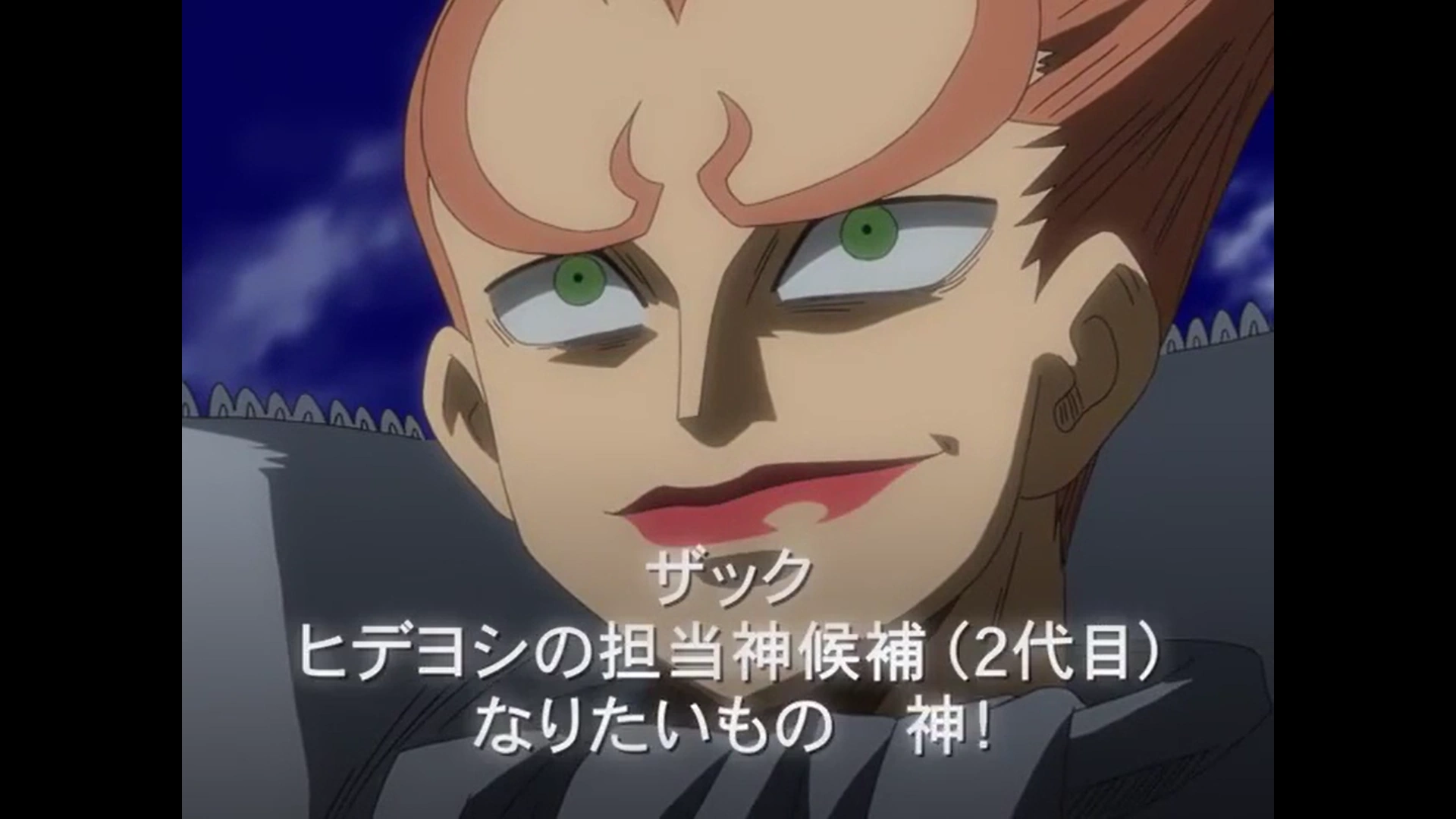 Zack (ザック, Zakku) is a Celestial/Heavenly Being and Hideyoshi's new Celestial King Candidate. He takes the position of Nero the Celestial King Candidate of Hideyoshi, after Hideyoshi's first Celestial King Candidate was sent to The Underworld. Zack is a very greedy & malicious person and he also works for the yakuza to get his way. Beside that, he always with Team Capucho and try threatening Hideyoshi by kidnapping the kids who being taking care by Hideyoshi to force him to join their team.